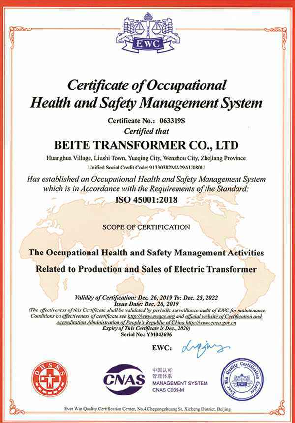职业健康安全管理体系认证证书-英文